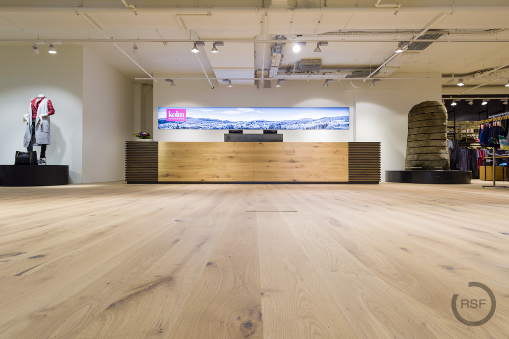 In knapp 6-monatiger Bauzeit wurde die Geschäftsfläche um 1.600 m² erweitert - für noch mehr Mode, Lifestyle und Freunde des guten Geschmacks. Passend dazu lieferte FOX HOLZ ca. 3.000 m² Parkett Landhausiele Eiche PURE Spirit.