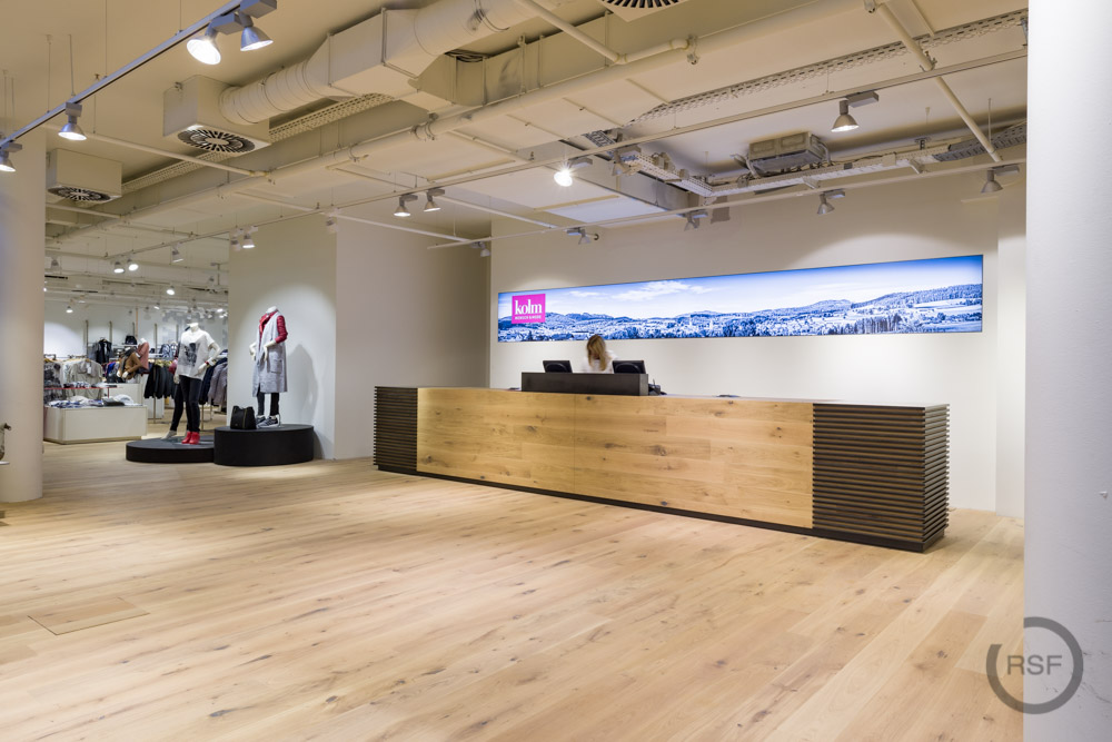 In knapp 6-monatiger Bauzeit wurde die Geschäftsfläche um 1.600 m² erweitert - für noch mehr Mode, Lifestyle und Freunde des guten Geschmacks. Passend dazu lieferte FOX HOLZ ca. 3.000 m² Parkett Landhausiele Eiche PURE Spirit.