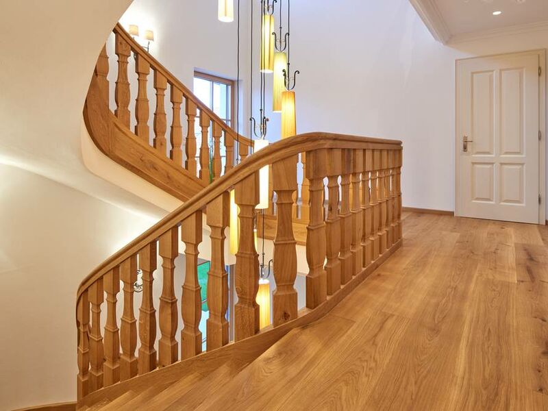 Boden und Treppe aus einem Guss. Dieses Einfamilienhaus wurde modern, hell und offen gestaltet. Die Landhausdiele Parkett Eiche Spirit Weiß passt perfekt zum Stil der Einrichtung. Ein Wohntraum der Wirklichkeit wurde.